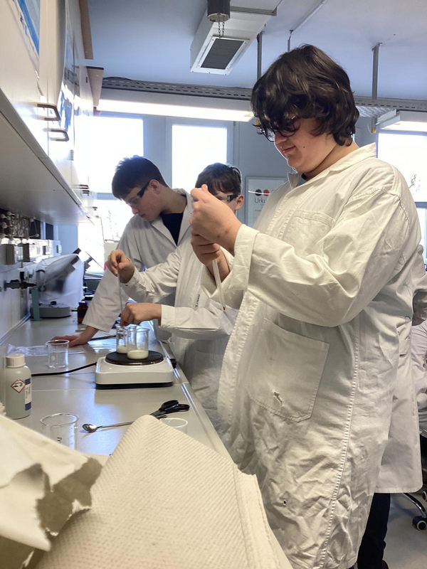 Mit Schutzbrille, Neugier und einer guten Portion Teamgeist wurde gerührt, gemessen, geklebt und getestet. Dabei zeigte sich schnell: Chemie steckt voller Überraschungen – und manchmal auch in ganz alltäglichen Dingen wie einem Tropfen Kleber.