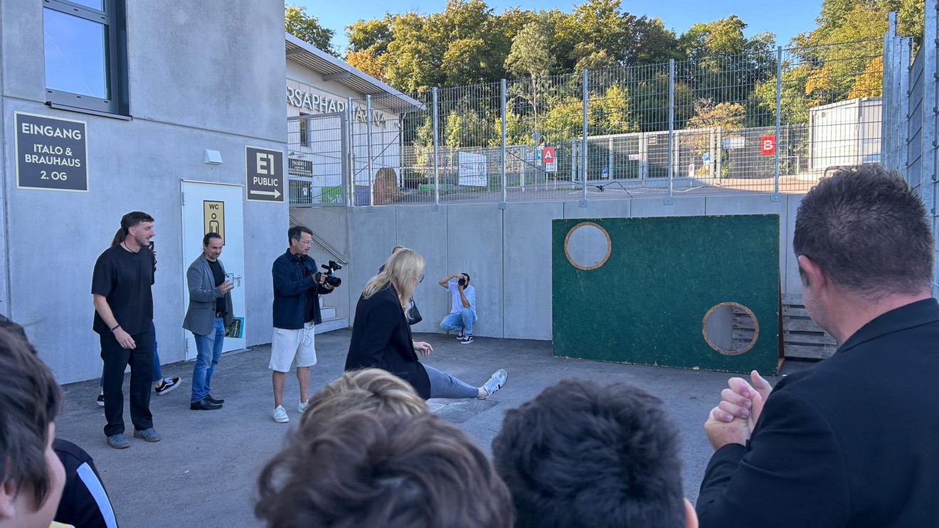 Am Freitag, den 19.09.25, hieß es für vier Jungs aus Klassenstufe 5, Schulleiter Herr Burkhard und Didaktikleiterin Frau Peters: Ab ins Stadion. Unsere Schule ist nämlich eine von nur vier Schulen im Saarland, die beim Projekt „Kicken und Lesen“ mitmachen dürfen – und da fand die Kick-Off-Veranstaltung natürlich stilecht in der Ursapharm-Arena statt: Heimspiel für uns! Mit am Start waren: Bürgermeister Bernd Huf, Vertreter der SVE und sogar Bildungsministerin Christine Streichert-Clivot. Ehemaliger Profi der SVE und immer noch Spieler der zweiten Mannschaft Lukas Kohler ließ es sich nicht nehmen, selbst aus einem Buch vorzulesen und die junge Leserschaft in seinen Bann zu ziehen. Danach durften die Schüler ran: Torwandschießen und Stadionführung sorgten für ordentlich Fußballfieber, während die Lehrer brav über das Projekt informiert wurden.